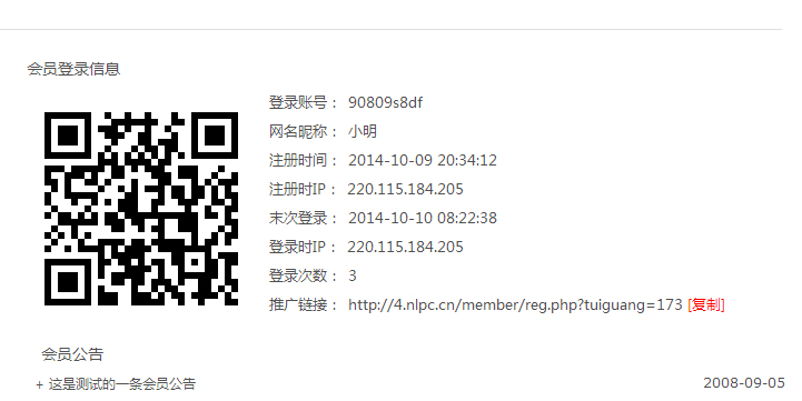 phpweb会员注册自动生成推广链接和二维码/二次开发