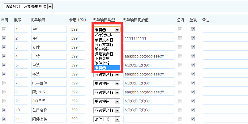 phpweb万能表单/单行/多行/单选/多选/附件上传/全能编辑器